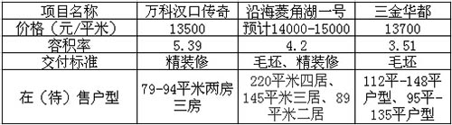 與菱角湖壹號(hào)一樣同屬菱角湖商圈的萬(wàn)科漢口傳奇,已于6月15號(hào)第一次加推,小編詢問(wèn)置業(yè)顧問(wèn)時(shí),置業(yè)顧問(wèn)表示預(yù)計(jì)也是明年年底交房,主要戶型為79-94平米兩房三房,全部為精裝修。